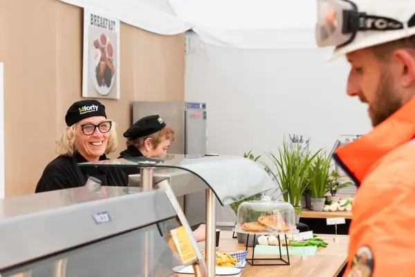 To meet the increased demand, 14forty set up a large temporary Food Village on-site, equipped with multiple service points for breakfast, lunch and dinner. This allowed customers to access a wide range of meal options, from traditional dishes to healthy, plant-based alternatives, ensuring a well-fed, content and productive workforce.