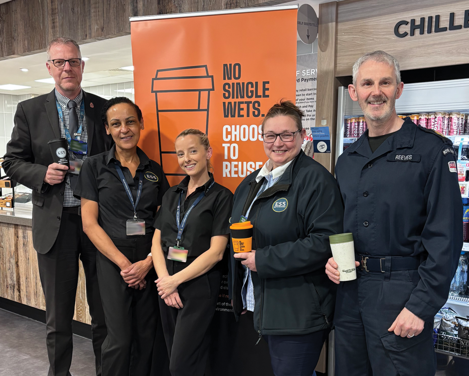 “The ‘No Single Wets’ campaign at Navy Command Headquarters, in collaboration with ESS, has been an important project for the Royal Navy Climate Change and Sustainability team. The ESS team were instrumental in planning and executing the campaign: from ensuring contingency measures were in place, through to helping educate customers about the initiative, all whilst maintaining their usual high customer standards. Despite initial concerns, the transition to reusable cups has been smooth and welcomed across the Command. Not only has this project reduced waste, it has also been a pathfinder in cultural change, process change and communicating Sustainability to the wider Navy Command community.”