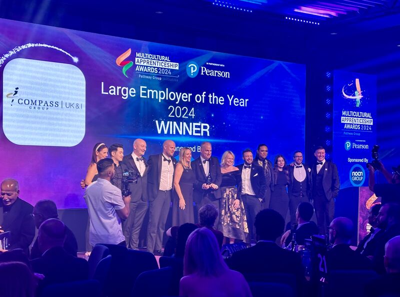- Compass Group UK and Ireland won the award in the Large Employer of the Year category, against tough competition for their commitment in attracting and supporting apprentices from diverse backgrounds.